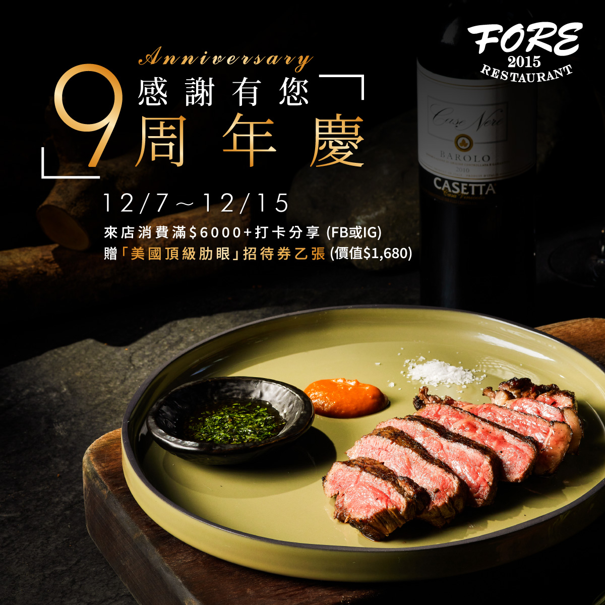 贈「美國頂級肋眼」招待券乙張 (價值$1,680)